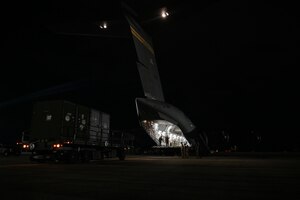 A U.S. Air Force C-17 Globemaster III unloads an R-11 Refueler on the flightline on Marine Corps Base Hawaii during the Joint Pacific Multinational Readiness Center 25-01, Oct. 9, 2024. The Joint Pacific Multinational Readiness Center (JPMRC) is the Army’s newest Combat Training Center (CTC) and